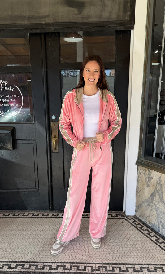 Velour Tracksuit Set with Stripe