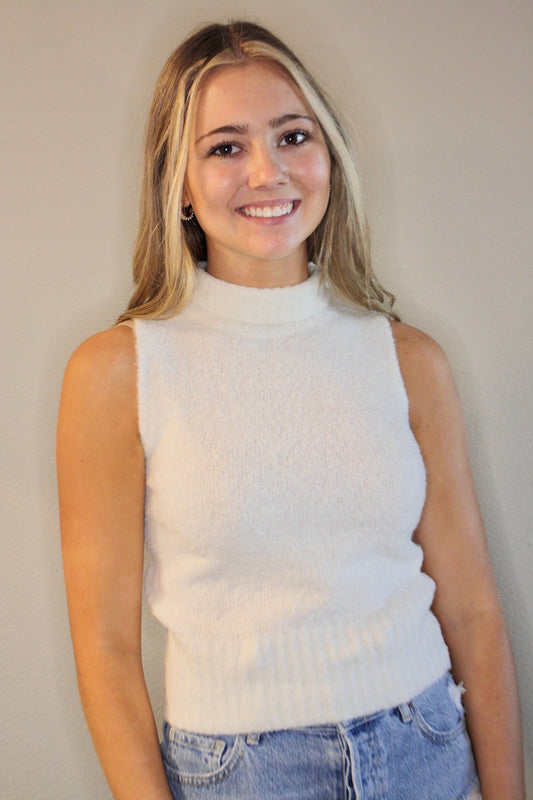 Sleeveless Mock Neck Knit Sweater Top