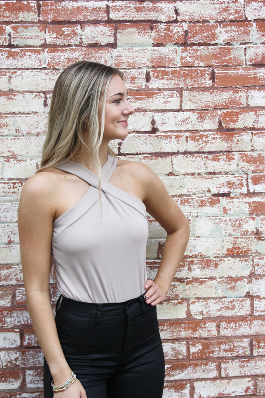 Cross Front Halter Neck Bodysuit