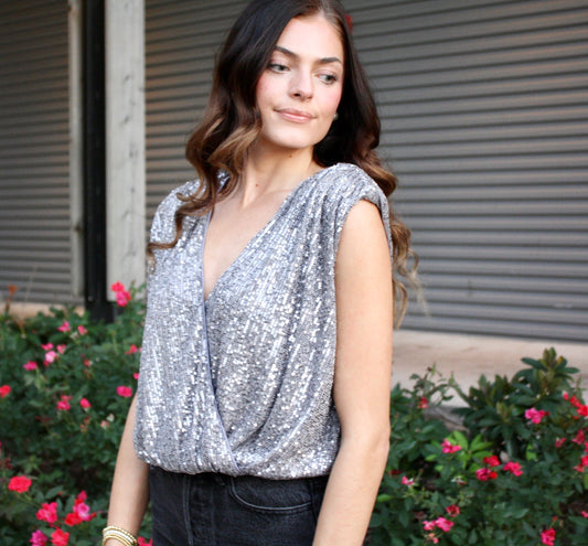 Padded Shoulder Sequin Bodysuit