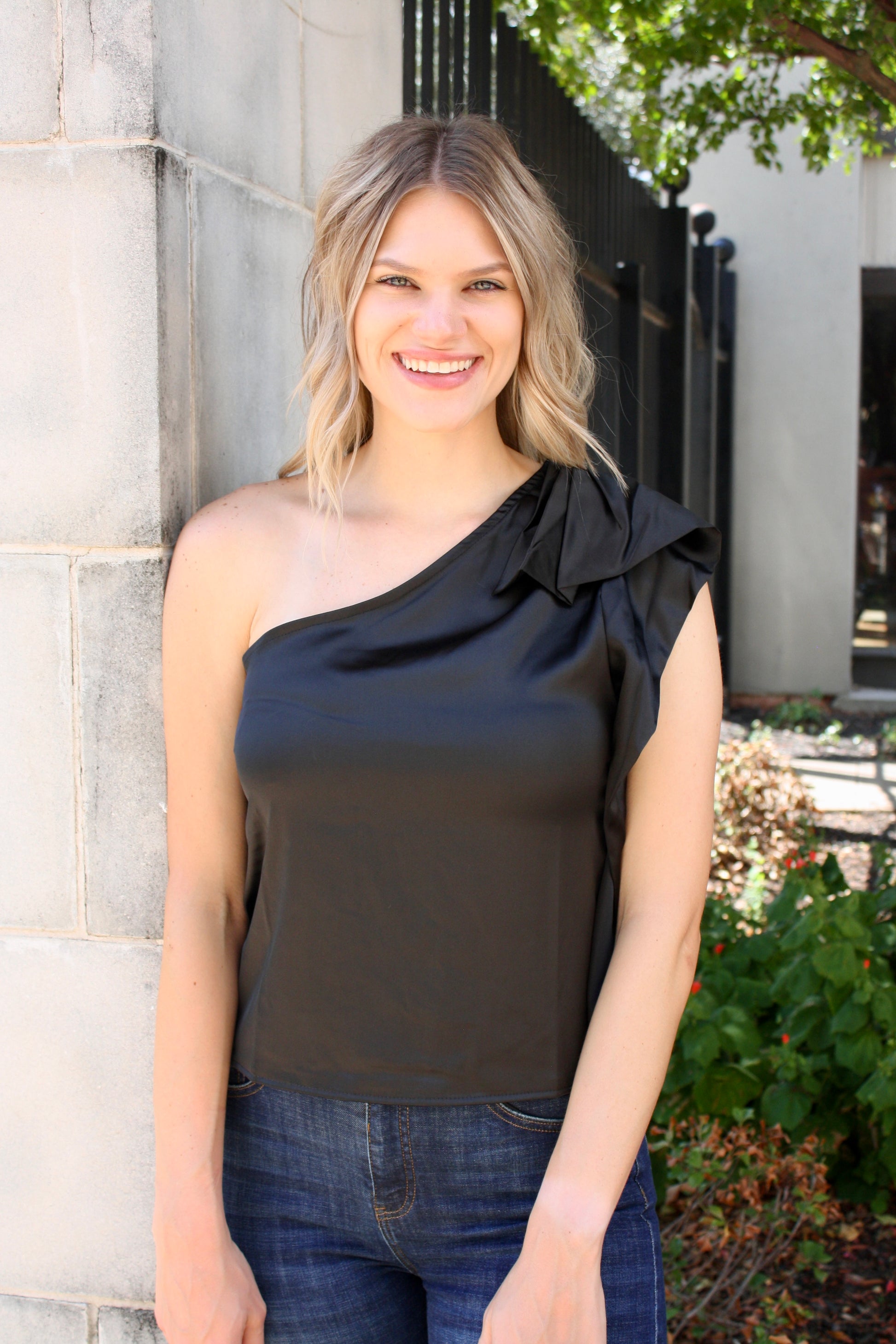 One Shoulder Satin Top